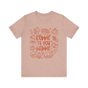 Thanksgiving Feast Short Sleeve Tee, Funny Thanksgiving Shirt, Gobble Til You Wobble Tee, Holiday Humor Tee, Family Dinner Clothing